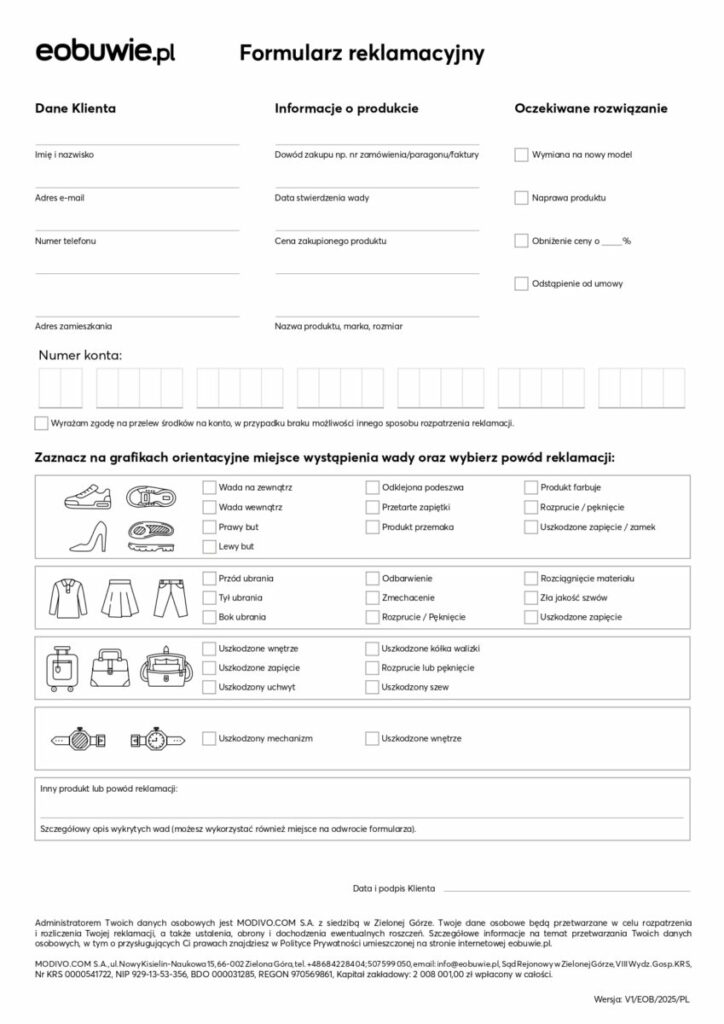 • formularz reklamacyjny.
