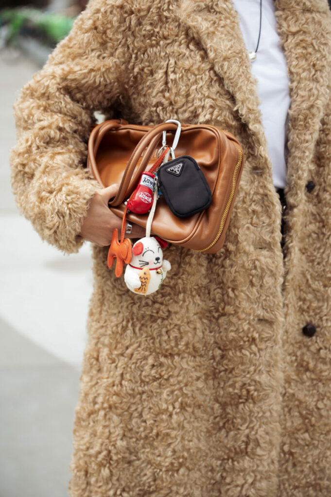 Zawieszki i breloki do torebek stały się kluczowym akcentem w stylizacjach na tegoroczną jesień. Pojawiały się zarówno na wybiegach, u Chloé czy Fendi, jak i królowały na ulicach Kopenhagi podczas tygodnia mody. Trendsetterki, takie jak Sonia Lyson czy Marianne Theodorsen pokazują, jak te detale potrafią odmienić każdą torebkę. Sonia – fanka minimalizmu, często wybiera subtelne breloki, które dodają elegancji klasycznym fasonom lub shopper bag. Z kolei Marianne, znana z tego, że nie boi się odważnych połączeń – stawia na kontrastowe zestawienia – jej torby zdobią zawieszki w intensywnych kolorach i nieoczywistych kształtach. Bez względu na to, czy wolisz subtelne detale, czy wyraziste akcenty, zawieszki do torebki to ciekawy i szybki sposób, by wpuścić w swoją stylizację figlarność i dodać jej modowego smaczku.